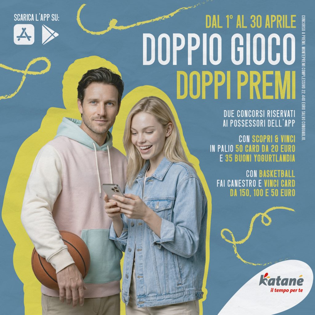 Dal 1° al 30 aprile, il Centro Commerciale Katanè lancia un’iniziativa speciale dedicata a tutti gli utenti dell’app: “Doppio gioco, doppi premi”.