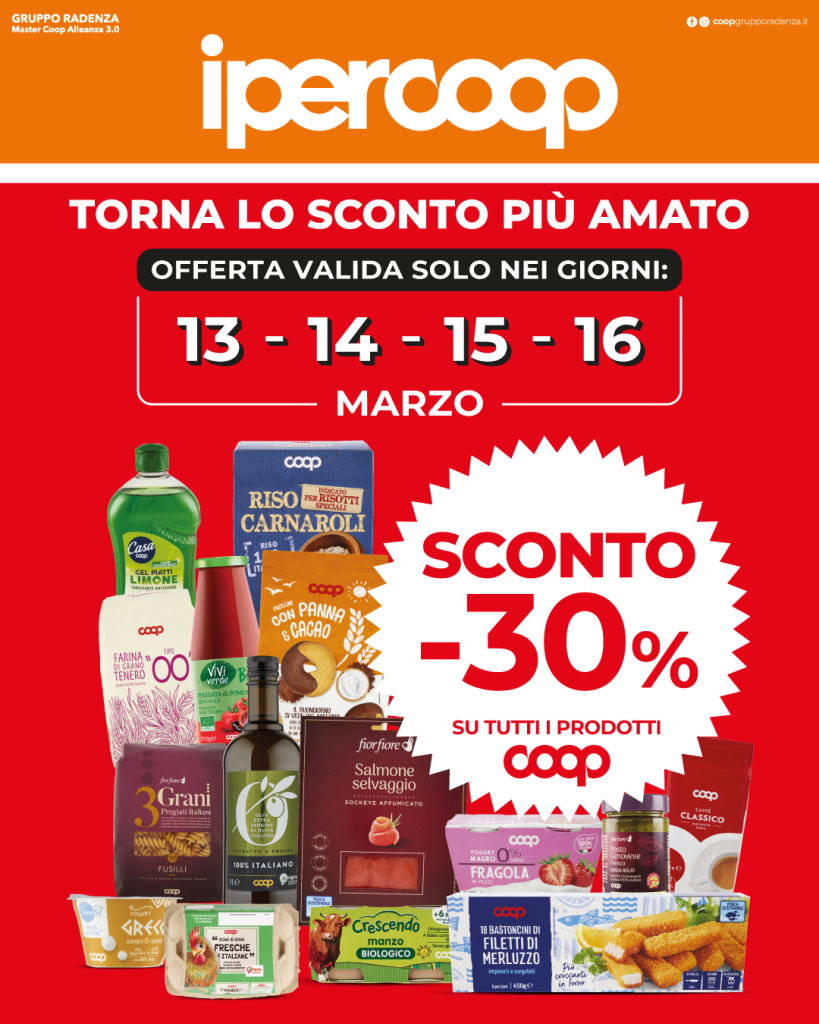 Sconto -30% su tutti i prodotti Coop*