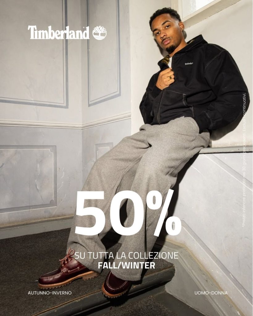 PROMO TIMBERLAND Pronto per la prossima avventura? 50% di sconto su tutta la collezione Fall/Winter Timberland. Fuori, senza limiti.